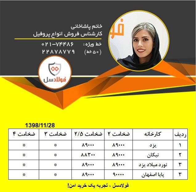 #تهران_شرق #قوطی_پروفیل #کارخانه ضخامت١/٥ میلیمتر_____ ضخامت٢ میلیمتر______۹۲۰۰۰ ضخامت۲.۵میلیمتر_____۹۱۰۰۰ ضخامت۳میلیمتر______۹۱۰۰۰ ضخامت۴میلیمتر______۹۷۰۰۰ ضخامت۵میلیمتر______۹۷۰۰۰ ضخامت۶میلیمتر______۹۷۰۰۰ ضخامت۸ الی۱۲میلیمتر______call ۰۲۱۶۶۹۱۱۰۰۷