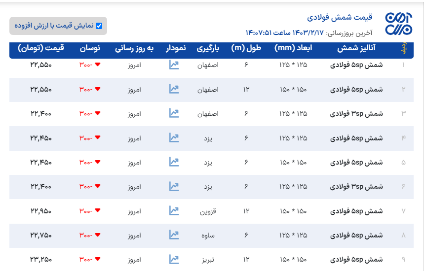 🟠 شرکت #پارس_مواد_نقش_جهان میلگرد قائم سایز 14تا 32 26 هزار و 150 تومان 📌 تامین کنندهی مواد اولیهی زنجیره فولاد شامل: ✅ انواع فروآلیاژها (فروسیلیس، فرومنگنز، فروسیلیکو منگنز، فرومولیبدن و...) ✅ گرافیت ✅آهن اسفنجی ✅ انواع شمش فولادی ✅انواع سرباره و شلاکه #جهت_مشاهده_پروفایل_پارس_مواد_نقش_جهان https://foolad24.com/profile/17737 #جهت_مشاهده_اعلام_موجودی_پارس_مواد_نقش_جهان https://foolad24.com/profile/17737/inventory 📌 تامین کننده انواع مقاطع فولادی( میلگرد، نبشی، تیرآهن، ناودانی، لوله، ورق و ...) 📎 اطلاعات تماس: 📞 031-35058 🌐 parsferro.com ✉️ info@parsferro.com 🆔 @parsferro 🧭 اصفهان، خیابان مصلی شمالی(آب ۲۵۰)، ساختمان هدی، طبقه دوم، واحد ۸