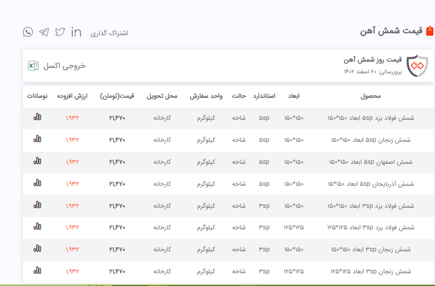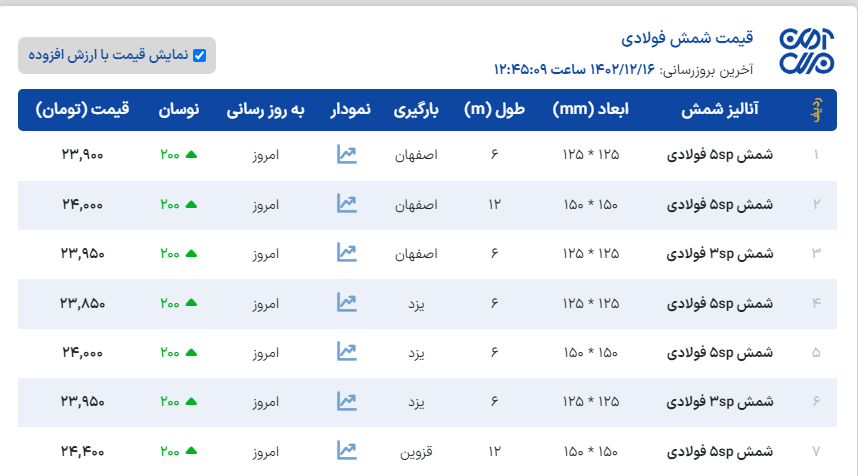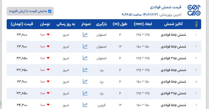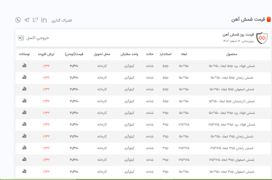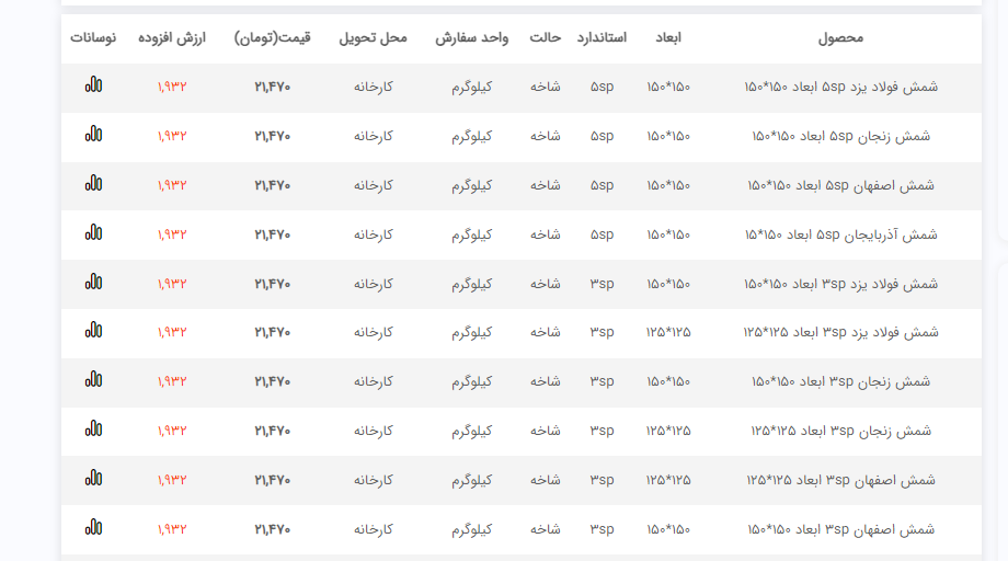 شمش یزد ، 150*150، 5sp ،12m اماده بارگیری ، قابل استعلام، قیمت مناسب شمش قوسی کرمان 150*150، 5sp،12m قابل استعلام ، قیمت مناسب میلگرد نیشابور ، میلگرد سیرجان، (16،18) ، کارخانه ورق 3* 1/5 سبا، فاکتور اسکلت ، قیمت مناسب شرکت مسیح صنعت اسپادانا شماره تماس : 03135078 09137005078 09001145078