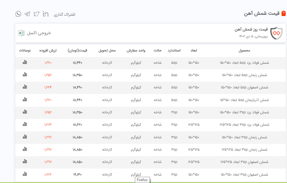 #فروش فوری شمش به قیمت مناسب: #شمش5sp ۱۵۰×۱۵۰ ۱۲متری رسمی تحویل درب کارخانه قابل استعلام 09198187102 https://t.me/ahangostarasia2