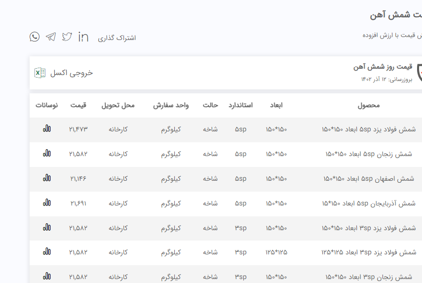 ✳️شرکت #صنایع_فولاد_خورشید_راسا 🔹تامین کننده مواد اولیه زنجیره فولاد 🔸سنگ آهن (مگنت و همات) 🔹کنسانتره سنگ آهن 🔸گندله سنگ آهن 🔹آهن اسفنجی 🔸انواع شمش فولادی 🔹انوع فروآلیاژها (فرومنگنز، فروسیلیس، فروسیلیکو منگنز، ...) 🔸تامین کننده انواع مقاطع تخت و طویل فولادی (میلگرد، تیرآهن، نبشی، ناودانی، ورق های گرم و سرد، گالوانیزه، لوله پروفیل، ...) 🔹واردکننده و توزیع کننده انواع ورق استیل ضد زنگ (شیت و رول) #جهت_مشاهده_پروفایل_صنایع_فولاد_خورشید_راسا👇🏻 https://foolad24.com/profile/10936 #جهت_مشاهده_اعلام_موجودی_صنایع_فولاد_خورشید_راسا👇🏻 https://foolad24.com/profile/10936/inventory ☎️ 021-91004242 📍Add : Saadatabad.Darya Blvd 🆔 @fooladrasa 🌐 www.fooladrasa.com