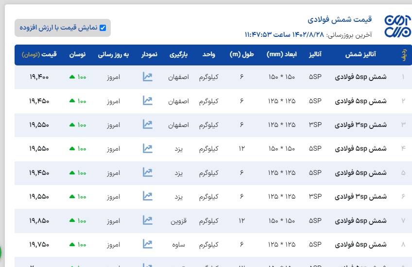 میان خطی st37هست ،ضخامت ۶۰بطول حدوداچهارمتربه مقداربیست تن، والباقی بار متفرقه ازقطر۴۰تا۸۰ازطول دومترتاپنج متربه وزن حدوداسی تن درمجموع باارزش افزوده ۱۹۳۰۰ به اضافه۲۰۰حق کارگزاری باتایید 09198187102