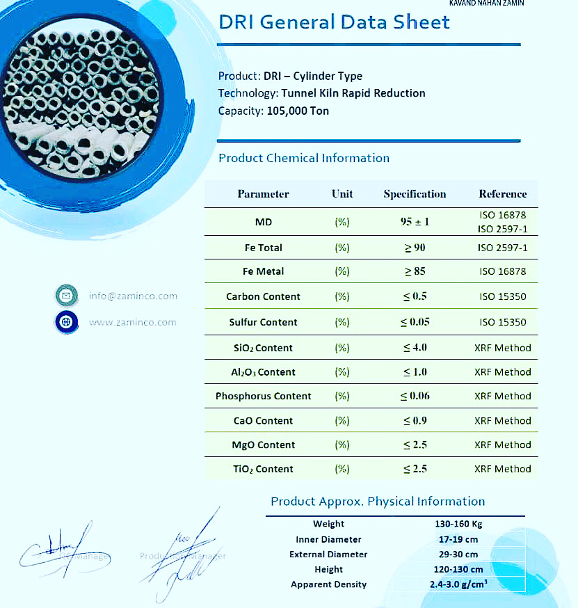 *دیتا شیت کارخانه* ☝️ *اسفنجی لوله ای برتر از اسفنجی دانه بندی و ضایعات ، برای کارخانجات فولادی . مستقیم از تولید کننده* ➖ سولفور زدایی شده ➖و low کربن ➖ با MD حدود 95 ➖آنالیز کاملا استاندارد که بر خلاف اسفنجی دانه بندی شده در ذوب متغیر نیست ➖نیاز به ادتیوهای کمتر ➖ کاهش مصرف انرژی در کل پروسه . ➖کاهش مصرف گرافیت بدلیل سولفور پایین