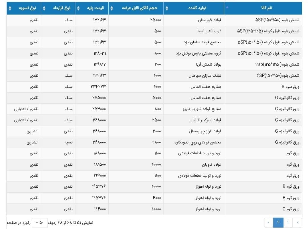 1400/04/01 ⬅️شمش مبدا: اصفهان سايز: 125*125 آناليز: 3sp طول: 6 متر مقدار: 300 تن آماده بارگیری قیمت: تماس ⬅️شمش مبدا: گرمسار سايز: 125*125 آناليز: 5sp طول: 6 متر مقدار: 200 تن آماده بارگیری قیمت: تماس ⬅️شمش مبدا: اصفهان سايز: 150*150 آناليز: 5sp طول: 12 متر مقدار: 250 تن آماده بارگیری قیمت: تماس ۰۲۱۶۶۴۷۰۲۹۸ ۰۲۱۶۶۴۷۶۸۳۹ @SpadFoulad