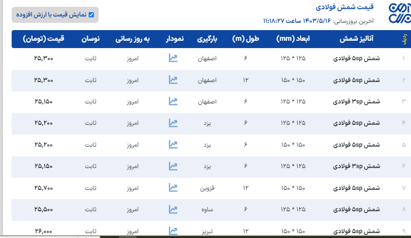 🟦شرکت چکاد تجارت سپاهان🟦 تامین کننده: 🔶 میلگرد جهان فولاد در سایزهای مختلف 🔷 نرمه آهن اسفنجی 🔶 شمش فولادی 🔷 ضایعات خرسک تاندیس 🔶 لجن آهن اسفنجی و سایر محصولات و ضایعات فولادی #چکاد_تجارت_سپاهان #جهت_مشاهده_پروفایل_چکاد_تجارت https://foolad24.com/profile/18069 #جهت_مشاهده_اعلام_موجودی_چکاد_تجارت https://foolad24.com/profile/18069/inventory مشاهده قیمتها به صورت روزانه در کانال تلگرام 👇 @chakadtejarat جهت کسب اطلاعات و مشاوره و اطلاع از قیمت با ما در تماس باشید. ☎️ ۰۲۱-۸۸۵۳۴۹۱۴ ☎️ ۰۲۱-۸۸۵۲۵۷۴۸ 📱 ۰۹۱۲۹۳۰۹۵۳۴ 🖥 https://chakadtejarat.com/ 🔸🔸🔸