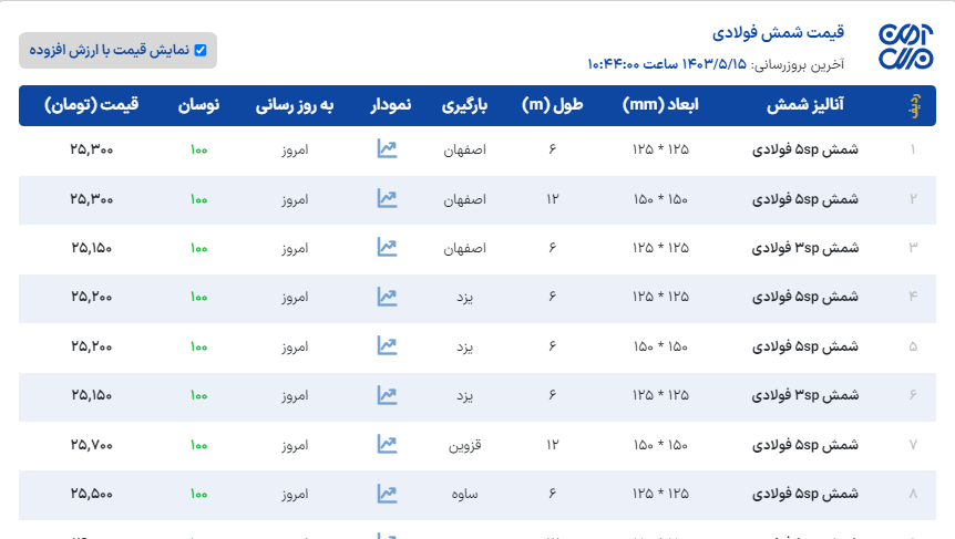 🟦شرکت چکاد تجارت سپاهان🟦 تامین کننده: 🔶 میلگرد جهان فولاد در سایزهای مختلف 🔷 نرمه آهن اسفنجی 🔶 شمش فولادی 🔷 ضایعات خرسک تاندیس 🔶 لجن آهن اسفنجی و سایر محصولات و ضایعات فولادی #چکاد_تجارت_سپاهان #جهت_مشاهده_پروفایل_چکاد_تجارت https://foolad24.com/profile/18069 #جهت_مشاهده_اعلام_موجودی_چکاد_تجارت https://foolad24.com/profile/18069/inventory مشاهده قیمتها به صورت روزانه در کانال تلگرام 👇 @chakadtejarat جهت کسب اطلاعات و مشاوره و اطلاع از قیمت با ما در تماس باشید. ☎️ ۰۲۱-۸۸۵۳۴۹۱۴ ☎️ ۰۲۱-۸۸۵۲۵۷۴۸ 📱 ۰۹۱۲۹۳۰۹۵۳۴ 🖥 https://chakadtejarat.com/ 🔸🔸🔸