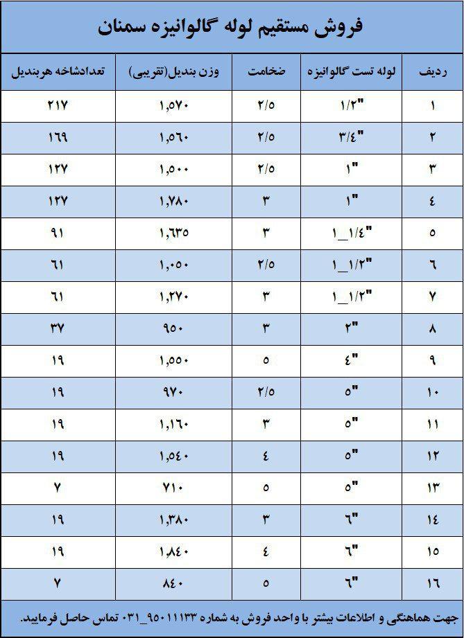 اعلام موجودی انواع محصولات فلزی