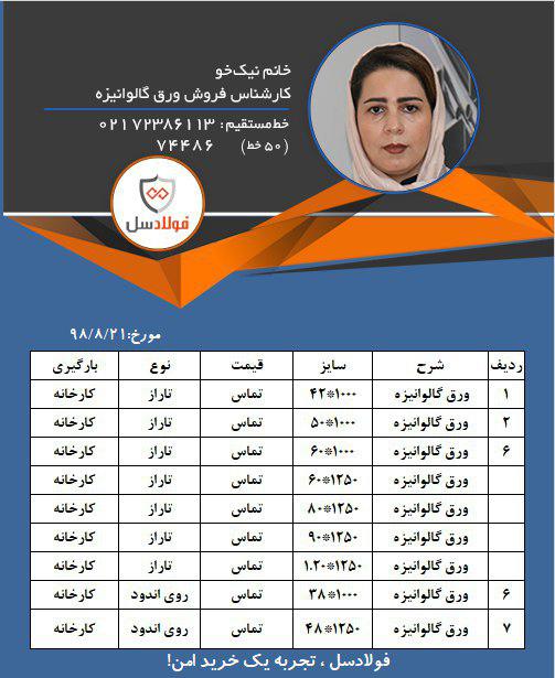 اعلام موجودی انواع محصولات فلزی