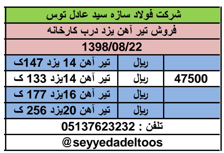 شرکت فولاد سازه سیدعادل توس فروش محصولات کارخانه یزد تیرآهن ۰۹۱۵۱۱۵۱۵۲۰ ۰۵۱۳۷۶۲۳۲۳۲ ۰۵۱۳۷۶۲۱۴۴۰