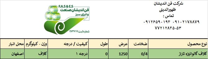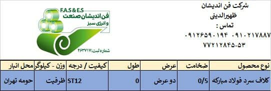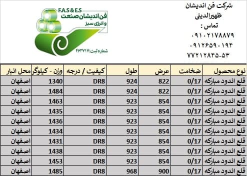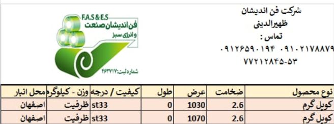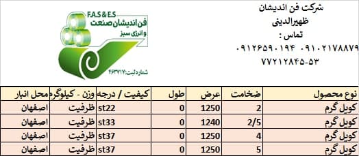 اعلام موجودی ورق گالوانیزه