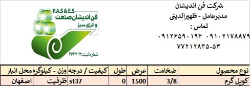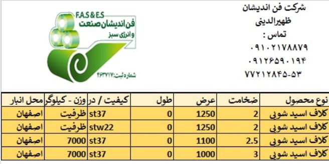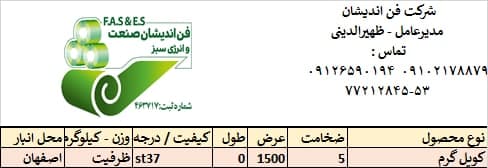 شرکت فن اندیشان صنعت و انرژی سبز عرضه کننده کلیه محصولات تخت و مقاطع فولادی مدیر عامل : سیدقاسم ظهیرالدینی 09126590194 تلفن های ثابت : 53- 77212845