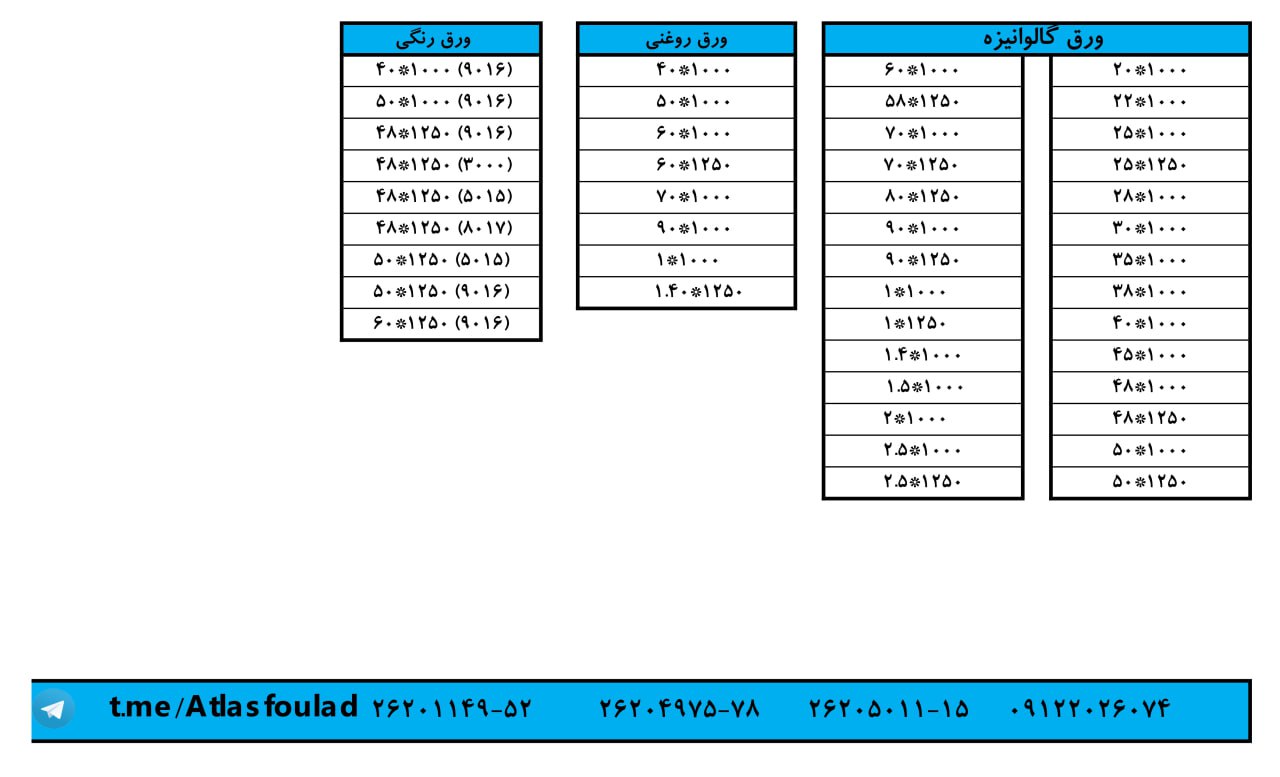 #اطلس_فولاد 📌عرضه کننده تخصصی ورق های گالوانیزه ،روغنی، رنگی مبدا تهران و کارخانه ☎️02126205015 ☎️02126201149 📱09122026074 🆔 https://t.me/atlasfoulad https:// ...