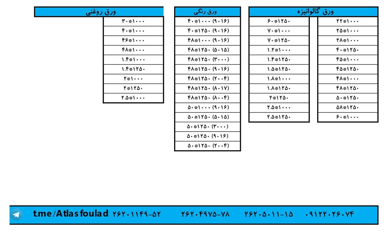 #اطلس_فولاد 📌عرضه کننده تخصصی گالوانیزه ،روغنی، رنگی مبدا تهران و کارخانه ☎️02126205015 ☎️02126201149 📱09122026074 🆔https://t.me/atlasfoulad https://foola ...
