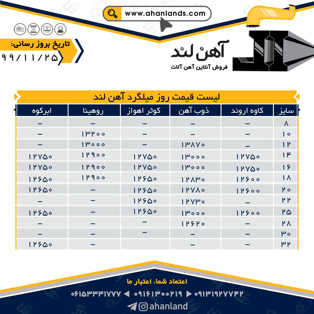 🔴آهن لند🔴 ⭕لیست قیمت انواع محصولات فولادی در تاریخ: 1399/11/25 برای مشاهده آنلاین قیمت انواع مقاطع فولادی به وب سایت WWW.AHANLANDS.COM مراجعه فرمایید. ⚜اعتما ...