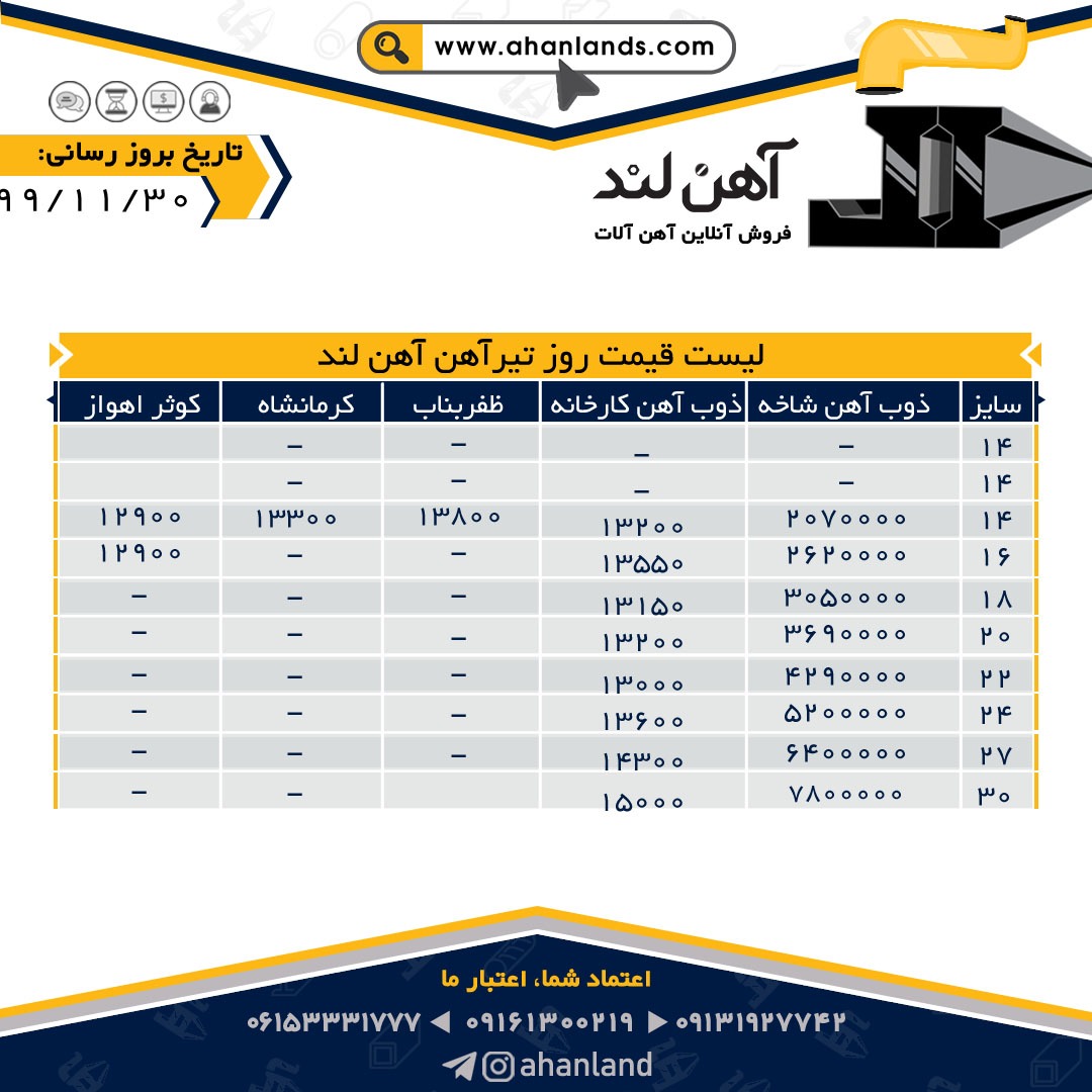 🔴آهن لند🔴 ⭕لیست قیمت انواع محصولات فولادی در تاریخ: 1399/11/30 برای مشاهده آنلاین قیمت انواع مقاطع فولادی به وب سایت WWW.AHANLANDS.COM مراجعه فرمایید. ⚜اعتماد ...