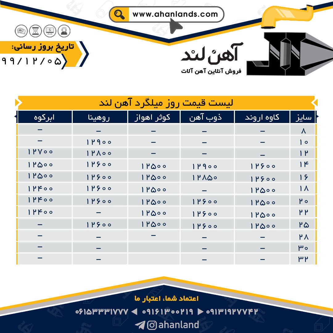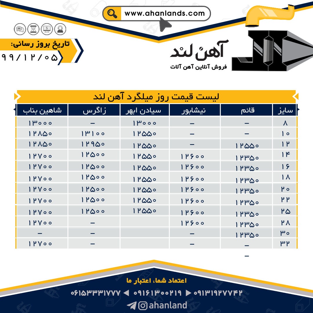 🔴آهن لند🔴 ⭕لیست قیمت انواع محصولات فولادی در تاریخ: 1399/12/05برای مشاهده آنلاین قیمت انواع مقاطع فولادی به وب سایت WWW.AHANLANDS.COM مراجعه فرمایید. ⚜اعتماد ...