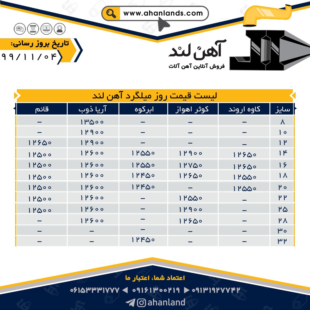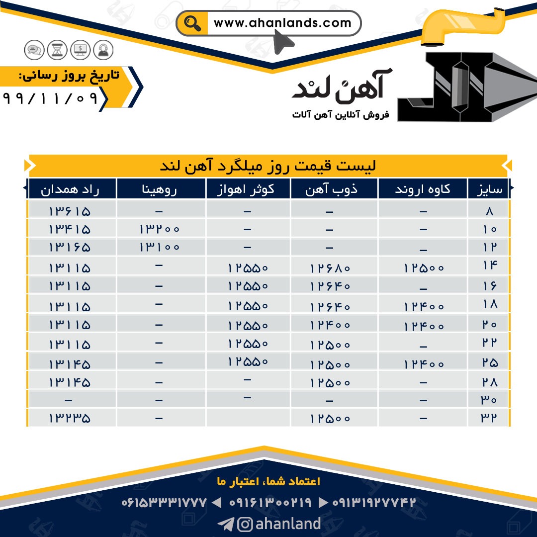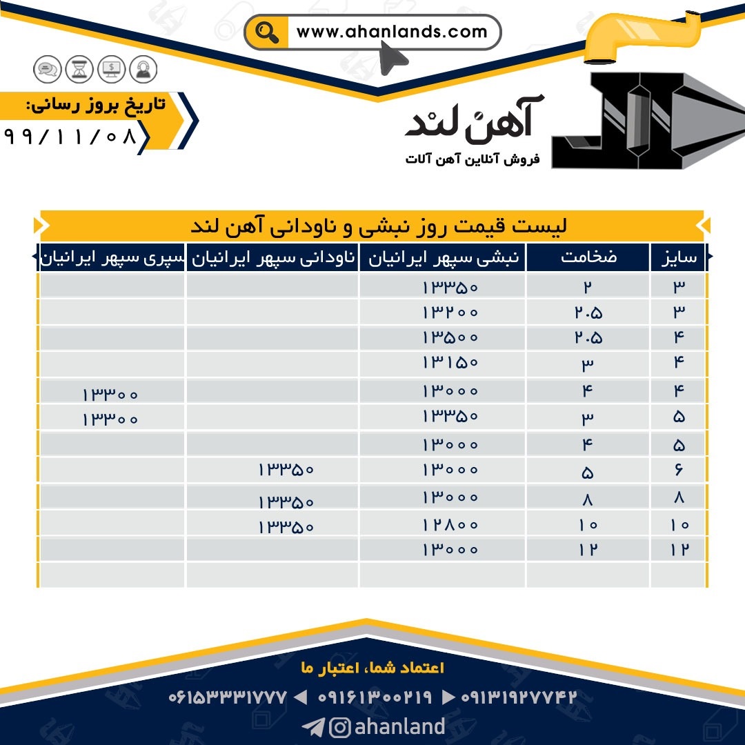 🔴آهن لند🔴 ⭕لیست قیمت انواع محصولات فولادی در تاریخ: 1399/11/09 برای مشاهده آنلاین قیمت انواع مقاطع فولادی به وب سایت WWW.AHANLANDS.COM مراجعه فرمایید. ⚜اعتما ...