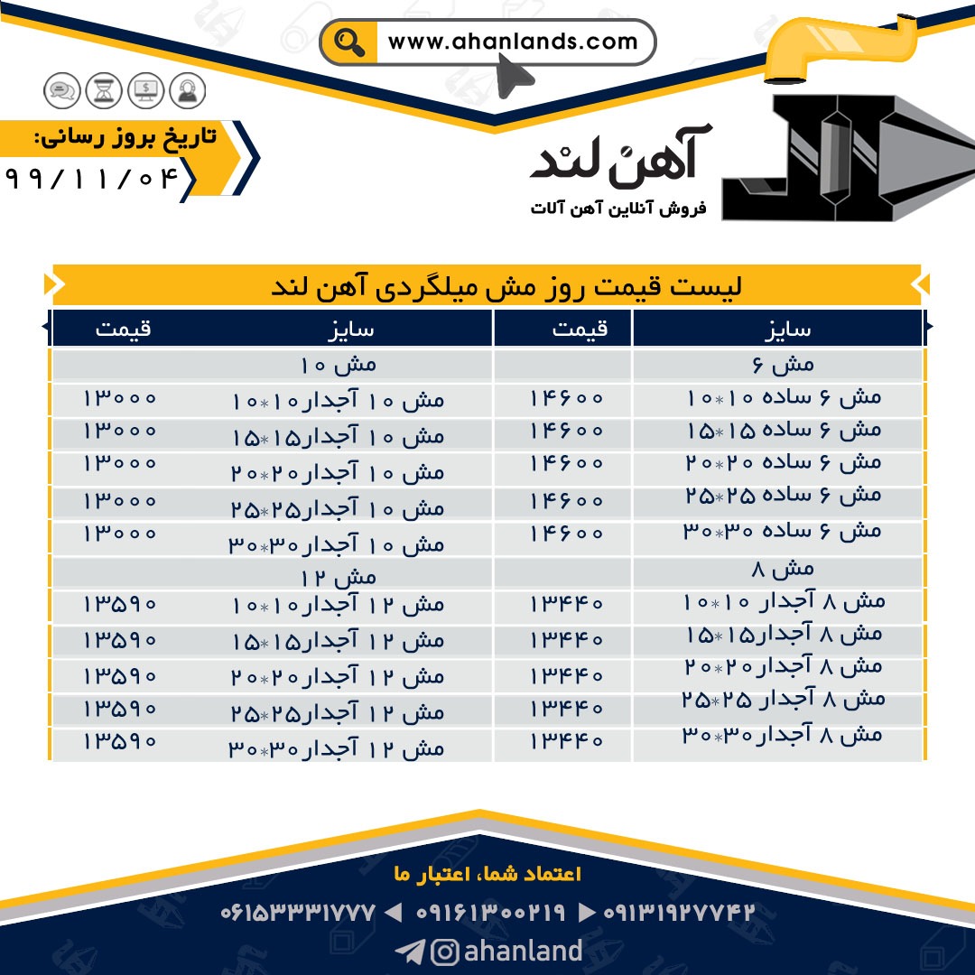 🔴آهن لند🔴 ⭕لیست قیمت انواع محصولات فولادی در تاریخ: 1399/11/01 برای مشاهده آنلاین قیمت انواع مقاطع فولادی به وب سایت WWW.AHANLANDS.COM مراجعه فرمایید. ⚜اعتما ...