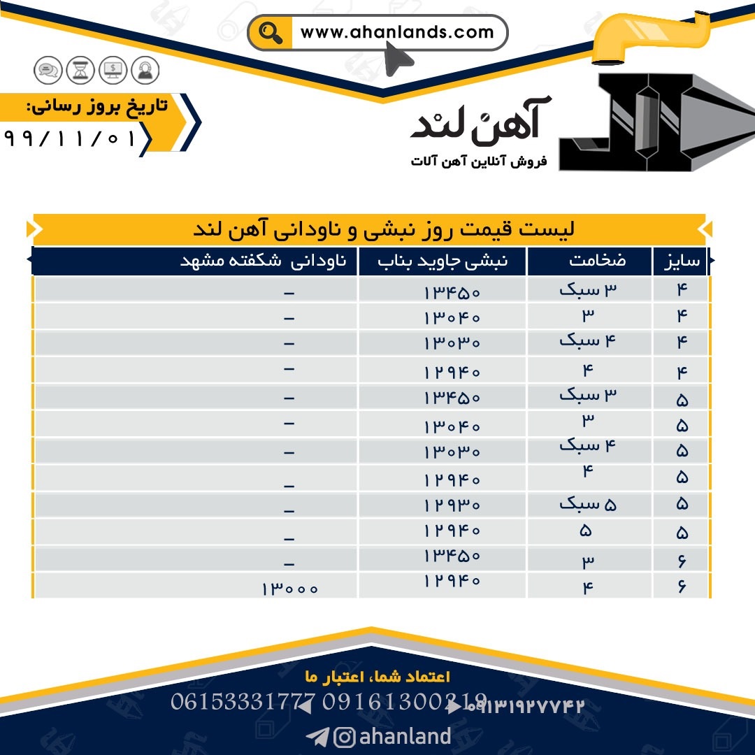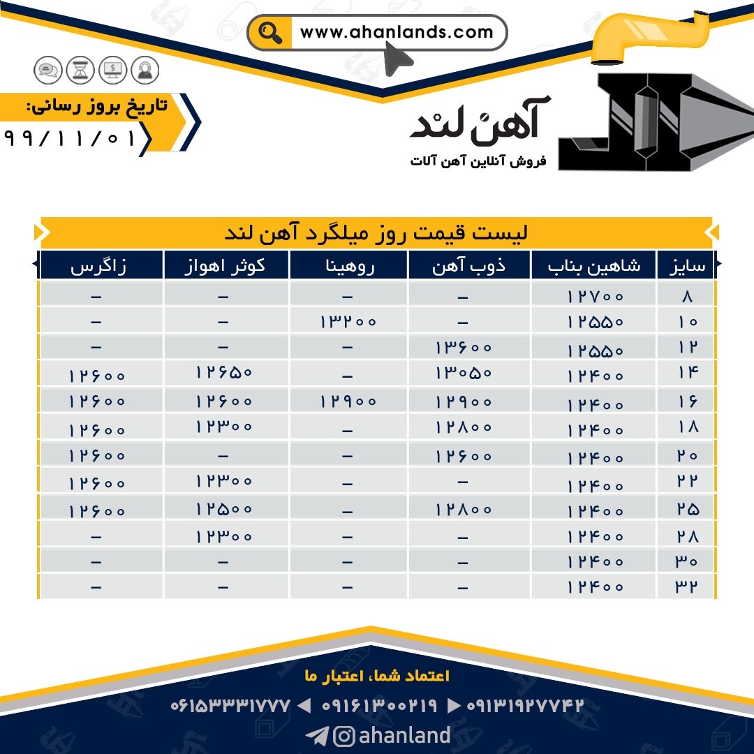 🔴آهن لند🔴 ⭕لیست قیمت انواع محصولات فولادی در تاریخ: 1399/11/01 برای مشاهده آنلاین قیمت انواع مقاطع فولادی به وب سایت WWW.AHANLANDS.COM مراجعه فرمایید. ⚜اعتما ...