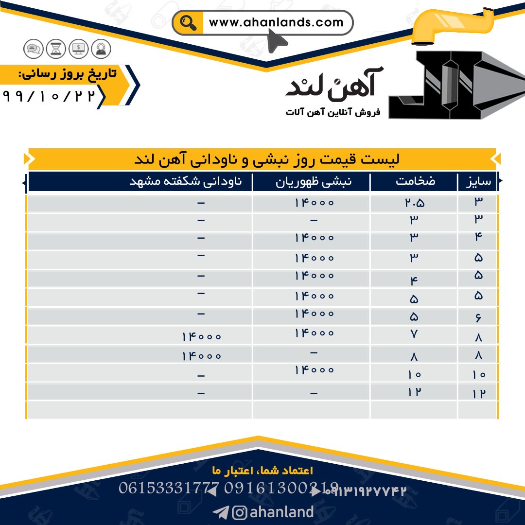 🔴آهن لند🔴 ⭕لیست قیمت انواع محصولات فولادی در تاریخ: 1399/10/22 برای مشاهده آنلاین قیمت انواع مقاطع فولادی به وب سایت WWW.AHANLANDS.COM مراجعه فرمایید. ⚜اعتماد ...