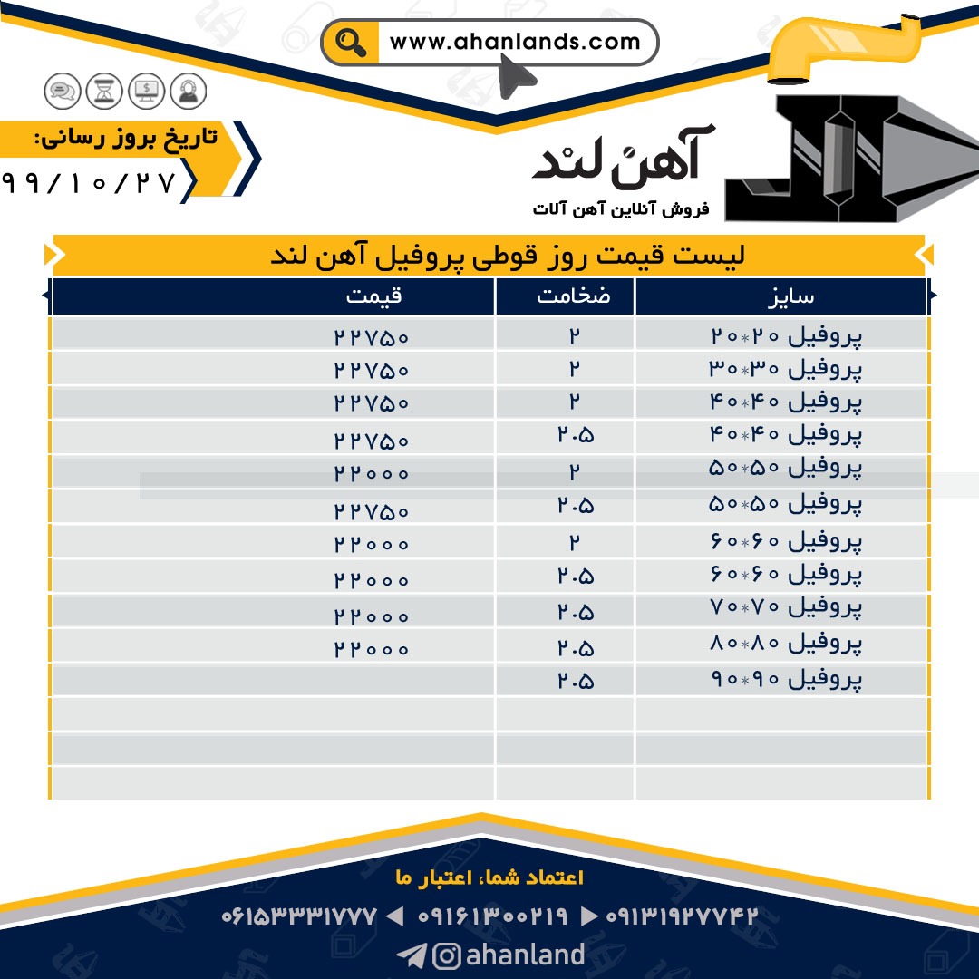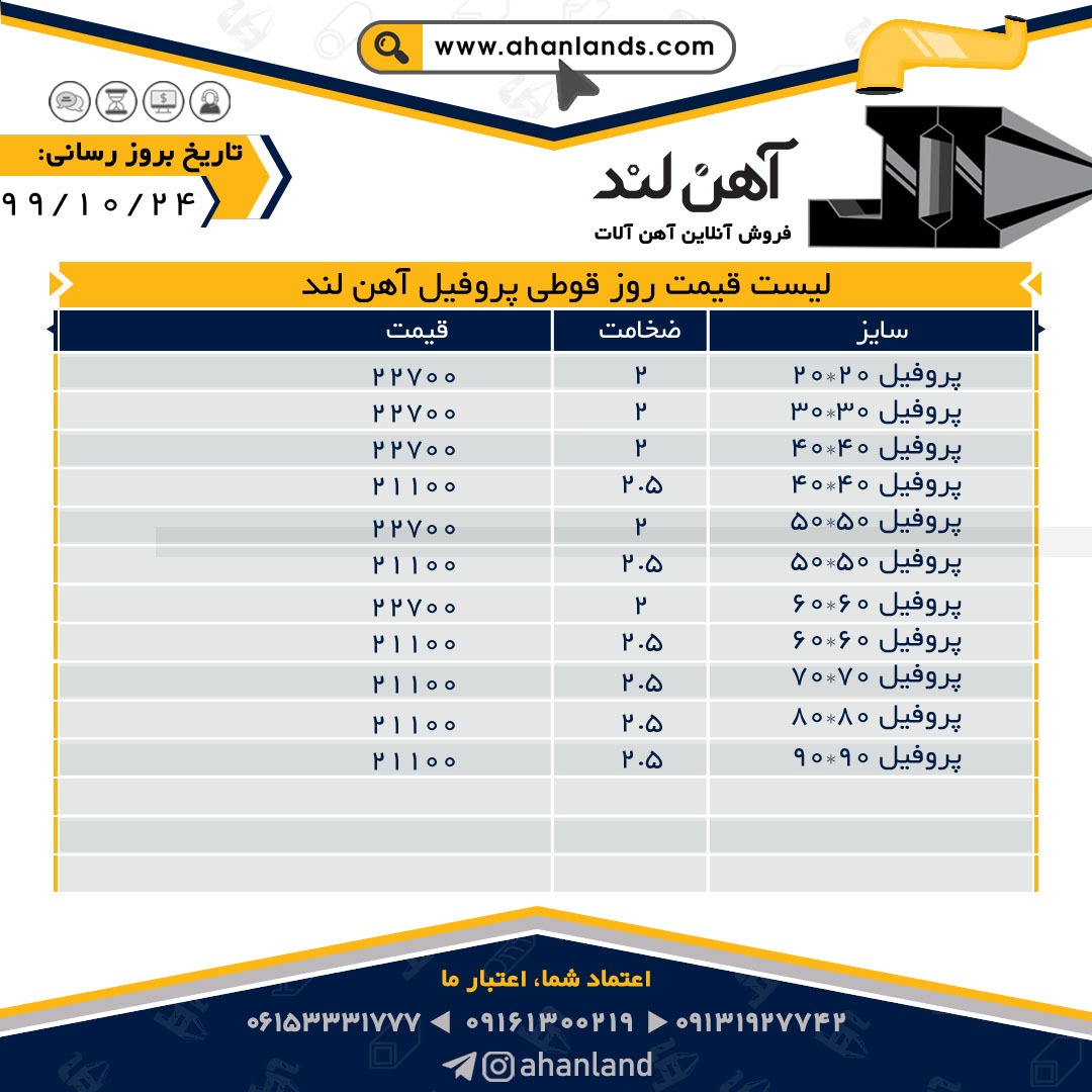 🔴آهن لند🔴 ⭕لیست قیمت انواع محصولات فولادی در تاریخ: 1399/10/30 برای مشاهده آنلاین قیمت انواع مقاطع فولادی به وب سایت WWW.AHANLANDS.COM مراجعه فرمایید. ⚜اعتما ...