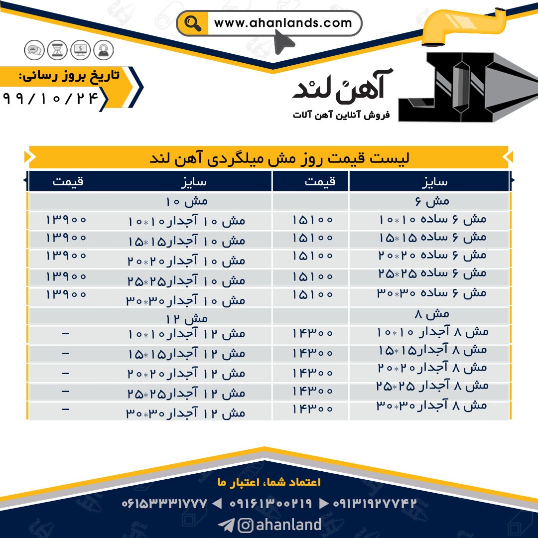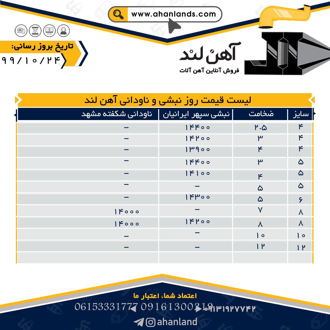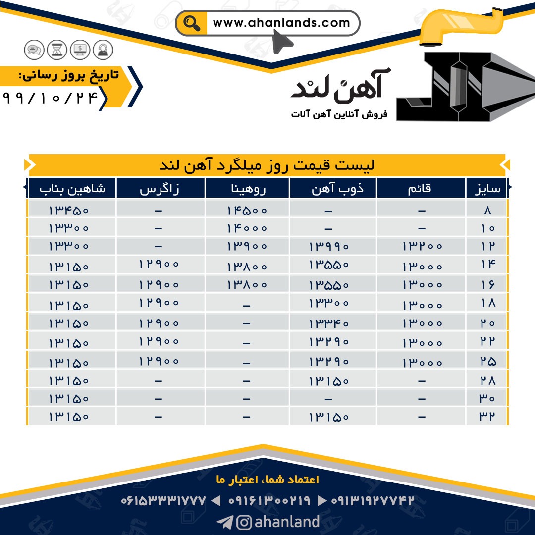 🔴آهن لند🔴 ⭕لیست قیمت انواع محصولات فولادی در تاریخ: 1399/10/24 برای مشاهده آنلاین قیمت انواع مقاطع فولادی به وب سایت WWW.AHANLANDS.COM مراجعه فرمایید. ⚜اعتماد ...