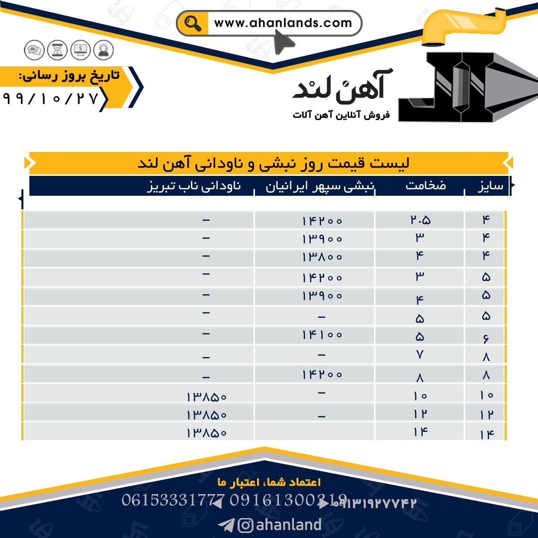 🔴آهن لند🔴 ⭕لیست قیمت انواع محصولات فولادی در تاریخ: 1399/10/25 برای مشاهده آنلاین قیمت انواع مقاطع فولادی به وب سایت WWW.AHANLANDS.COM مراجعه فرمایید. ⚜اعتماد ...