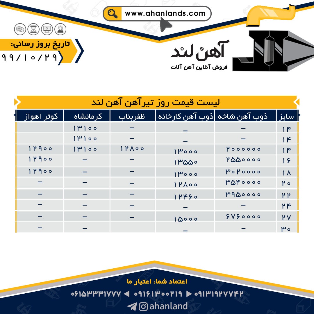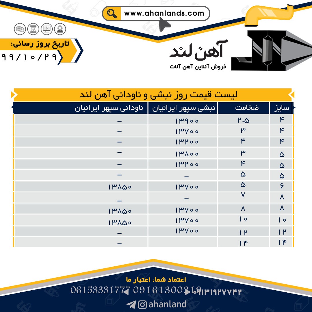🔴آهن لند🔴 ⭕لیست قیمت انواع محصولات فولادی در تاریخ: 1399/10/29 برای مشاهده آنلاین قیمت انواع مقاطع فولادی به وب سایت WWW.AHANLANDS.COM مراجعه فرمایید. ⚜اعتما ...