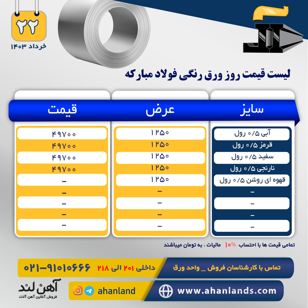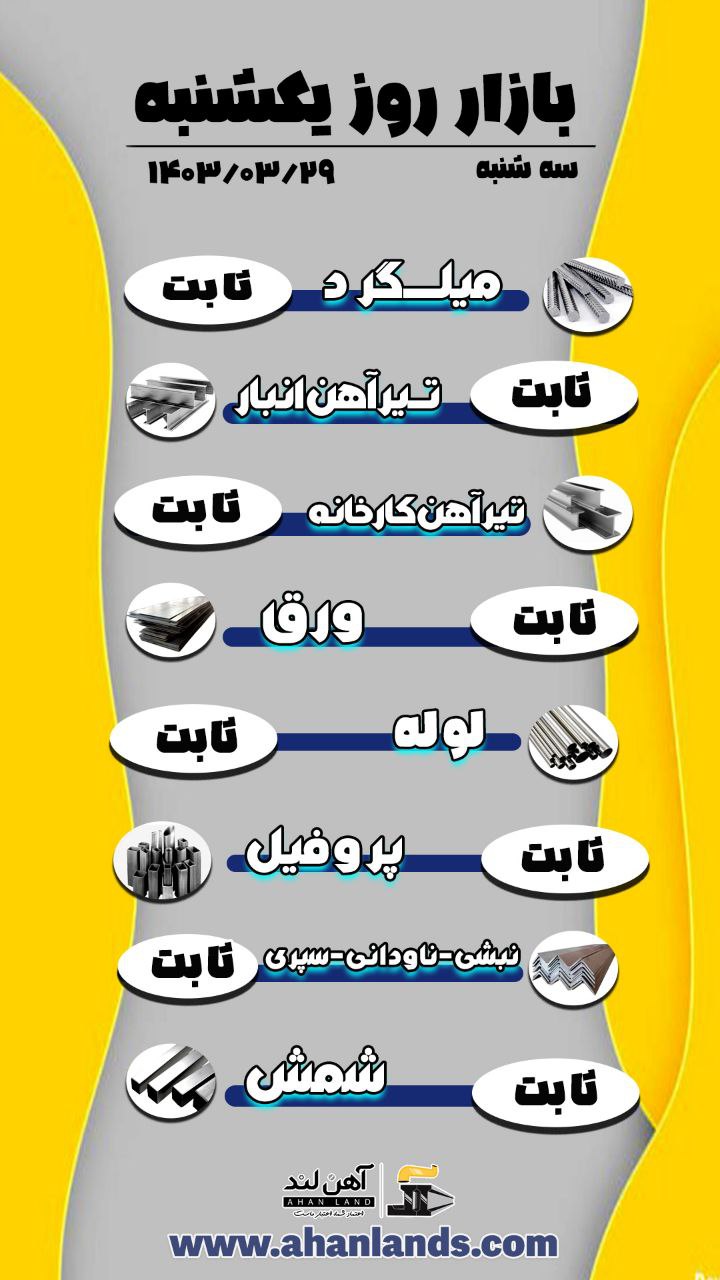 بازار روز یکشنبه آهن آلات 🗓سه شنبه 1403/03/29 . . ✅ جهت خرید، مشاوره و ارتباط با کارشناسان فروش: https://zil.ink/ahanland ☎️ 021 910 10 666 ☎️ 061 53 222 100 ...
