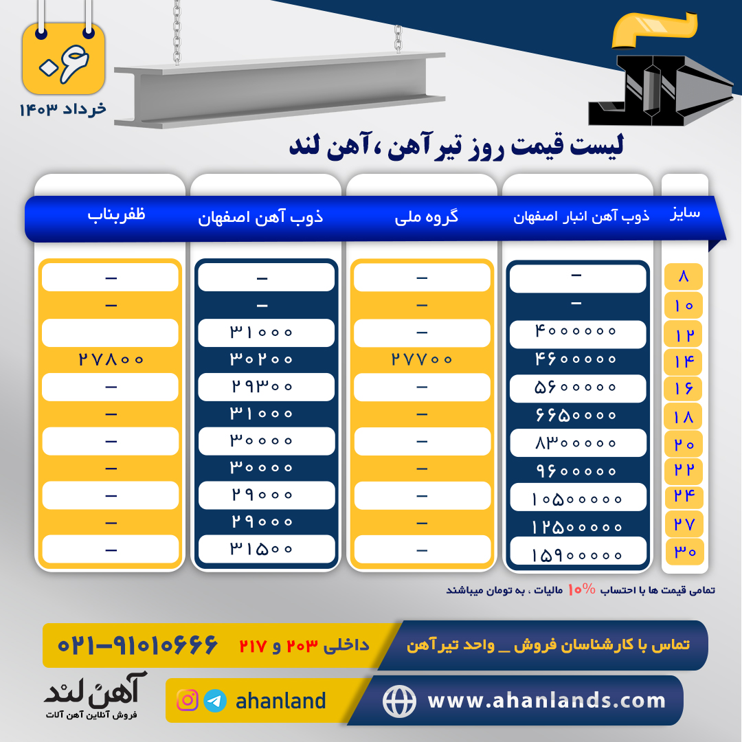 📢#تیرآهن_ذوب_آهن_انبار_اصفهان 🗓سه شنبه 1403/03/29 🚛بارگیری #انبار تیرآهن 12↔️ 3.800.000 تومان تیرآهن 14↔️ 4.500.000 تومان . . ✅ مشاه ...