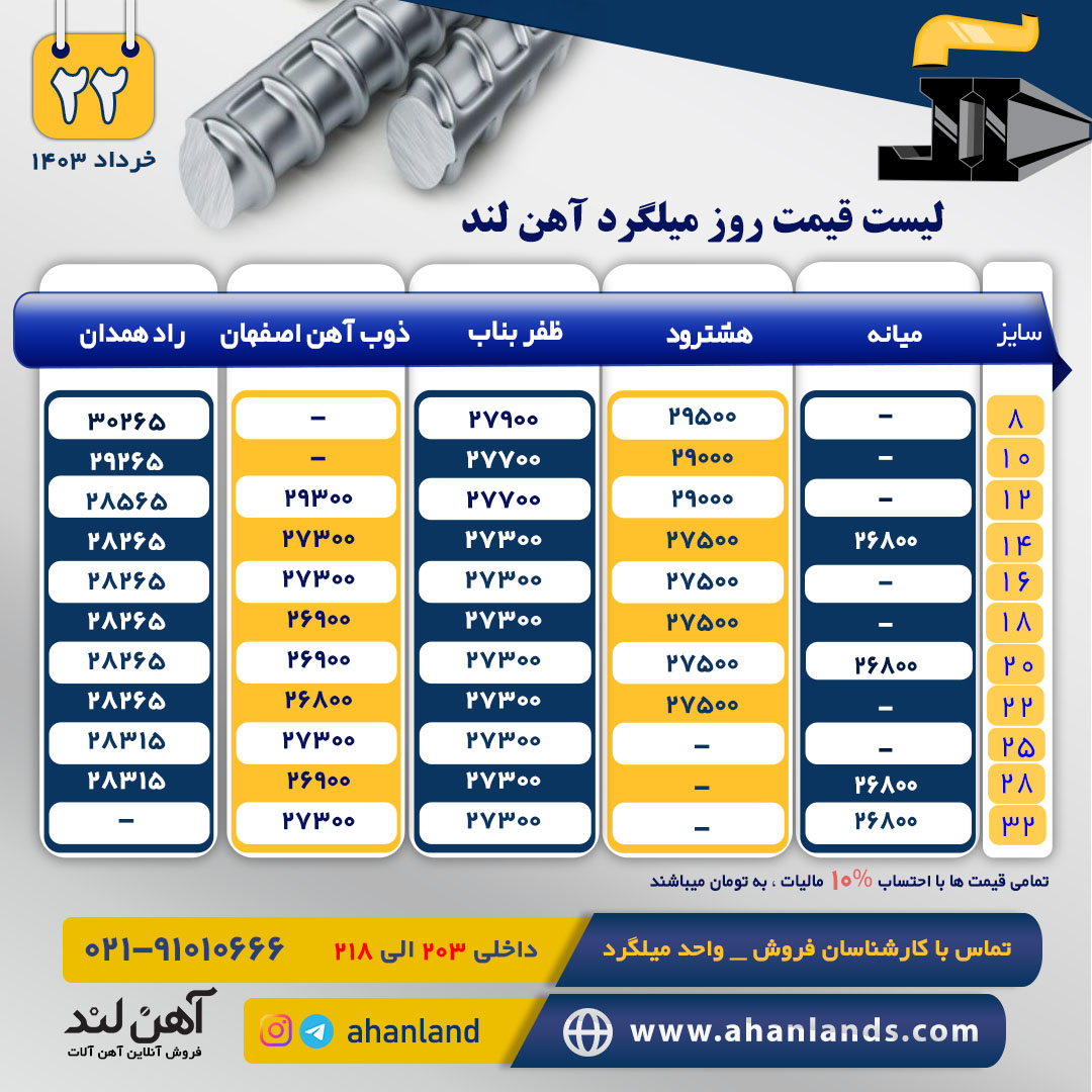 📢#میلگرد_پرشین_فولاد 🗓شنبه 1403/03/05 🚛بارگیری #کارخانه 🔸ثابت میلگرد 10↔️ 27500 تومان میلگرد 12↔️ 27100 تومان میلگرد 14↔️ 26750 تومان . . . ...