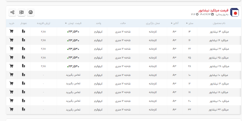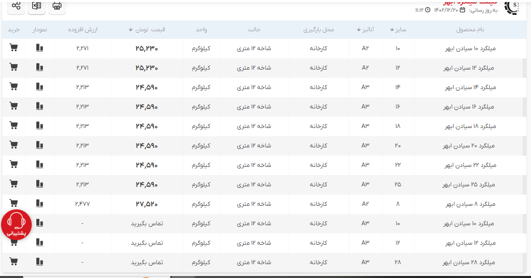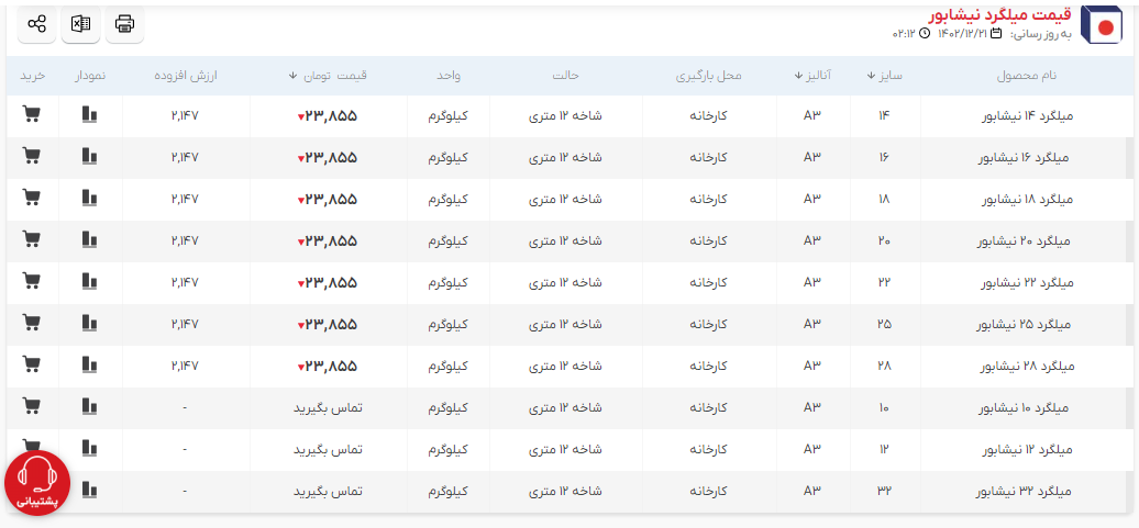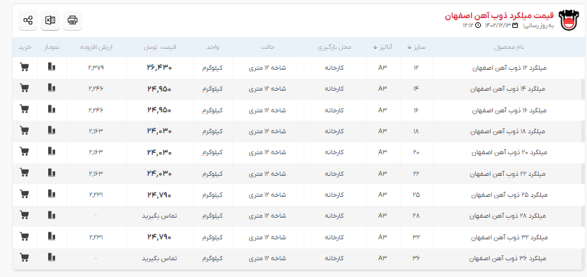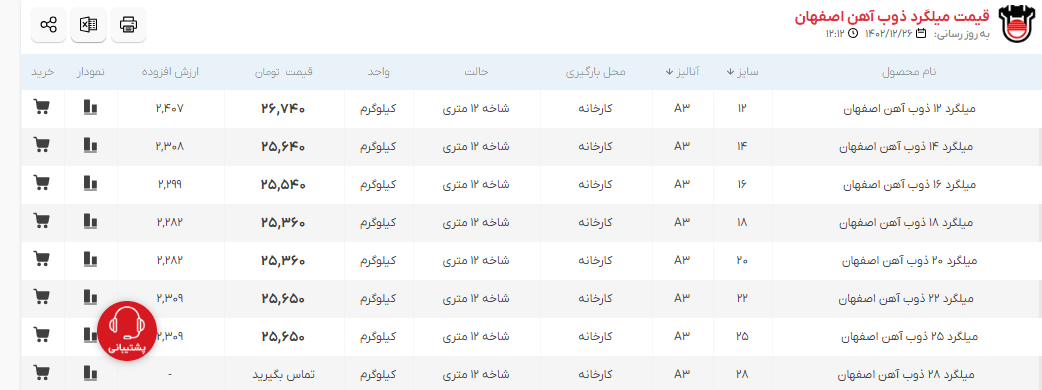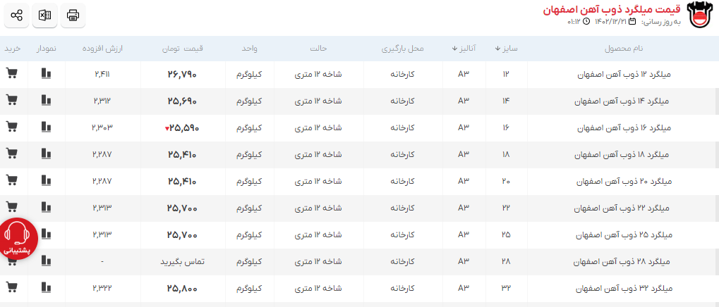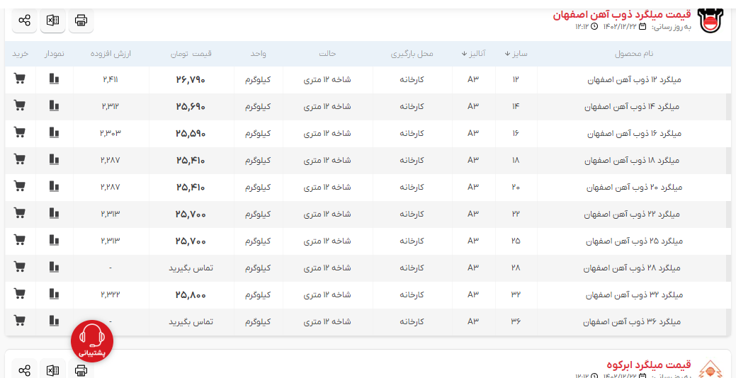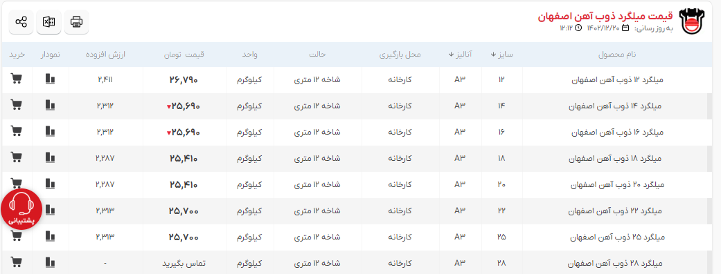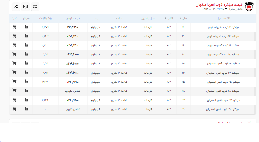 بارگیری از کارخانه اصفهان ثابت 8 5250 تومان 10 5100 تومان 12 5950 تومان 14 5900 تومان ارتفاع خرپا از 10 الی 32 سانتیمتر 03135155 تلفن ویژه دا ...