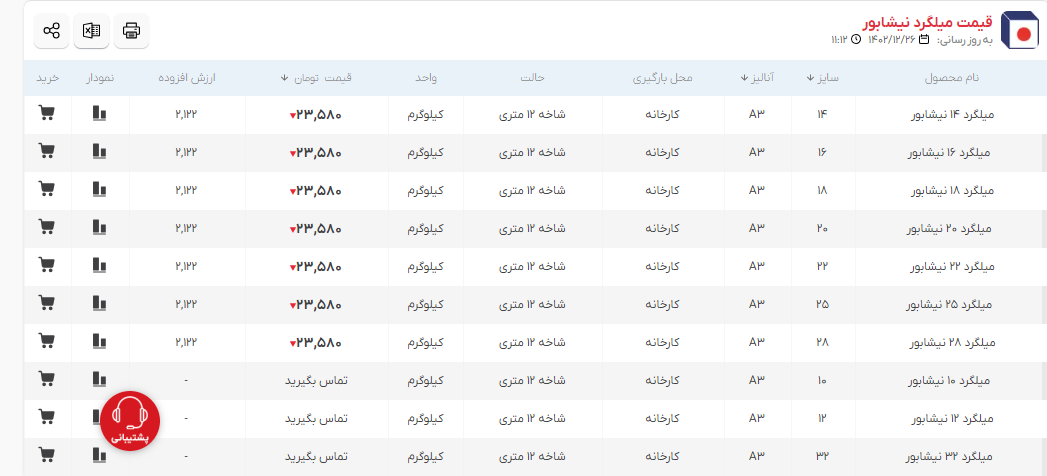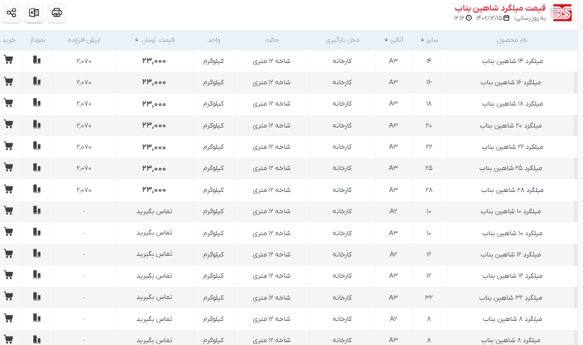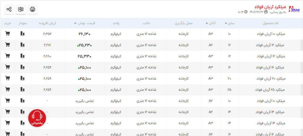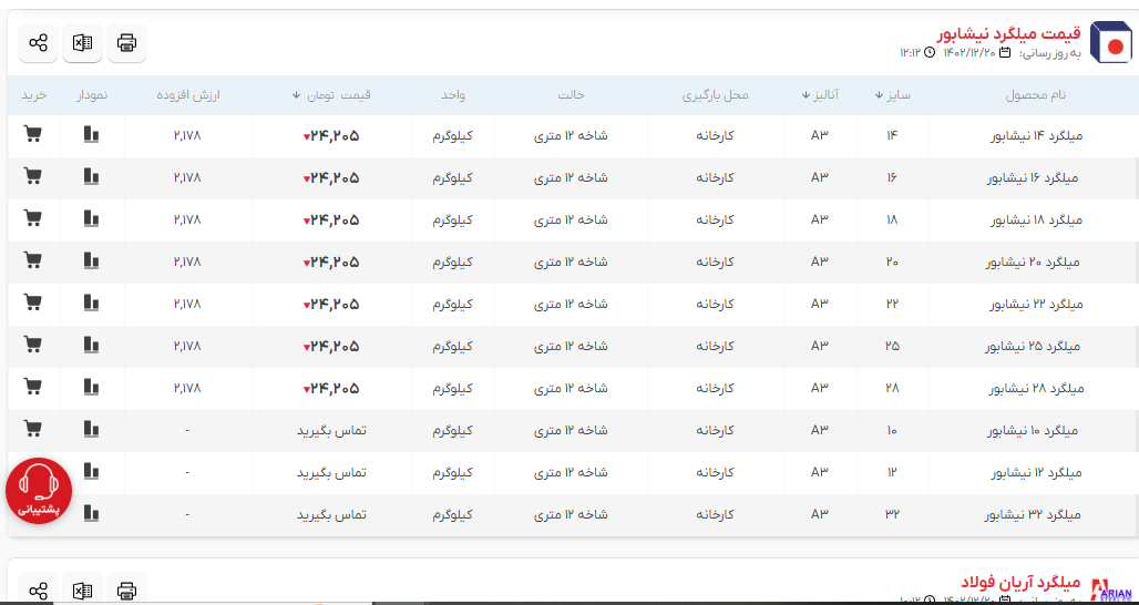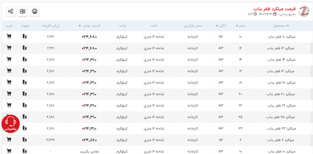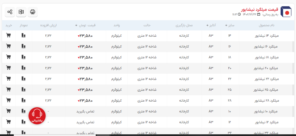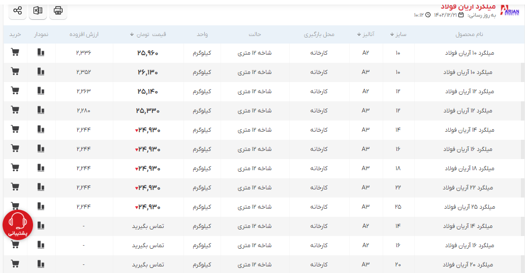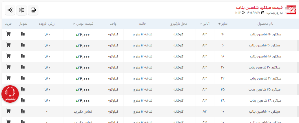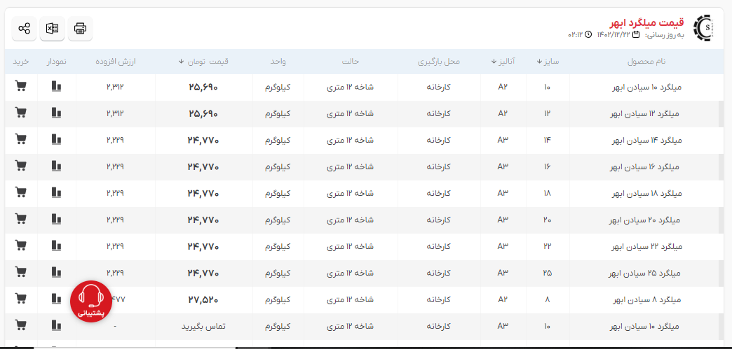 بارگیری از کارخانه اصفهان ثابت 8 5250 تومان 10 5100 تومان 12 5950 تومان 14 5900 تومان ارتفاع خرپا از 10 الی 32 سانتیمتر 03135155 تلفن ویژه دا ...