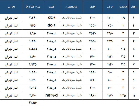 1402/9/19 شرکت فولاد خورشید ایرانیان ( شیدوش ) #انبار_تهران (اجناس امانی) 10 امیرکبیر آ3 12 امیرکبیر آ3 14.16.18 امیرکبیر 20.22. ...