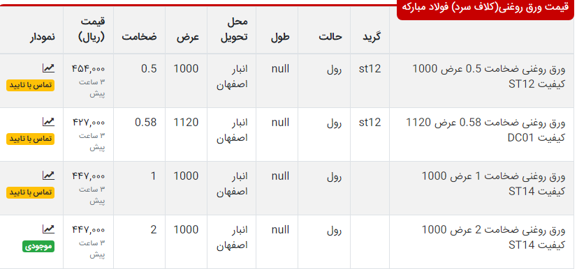 🔵🔵موجودی ورق روغنی فولاد مبارکه ✨ضخامت0.7عرض1120 کیفیت DC01 ✨ضخامت 0.7 عرض1120 کیفیت st14 ✨ضخامت 0.7 عرض1200 کیفیت st14 ✨ضخامت 0.7 عرض1240 کیفیت s ...