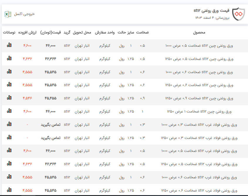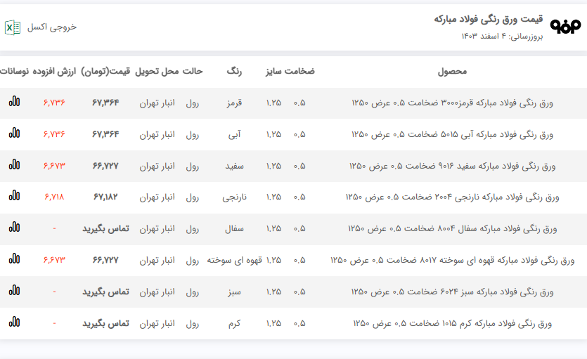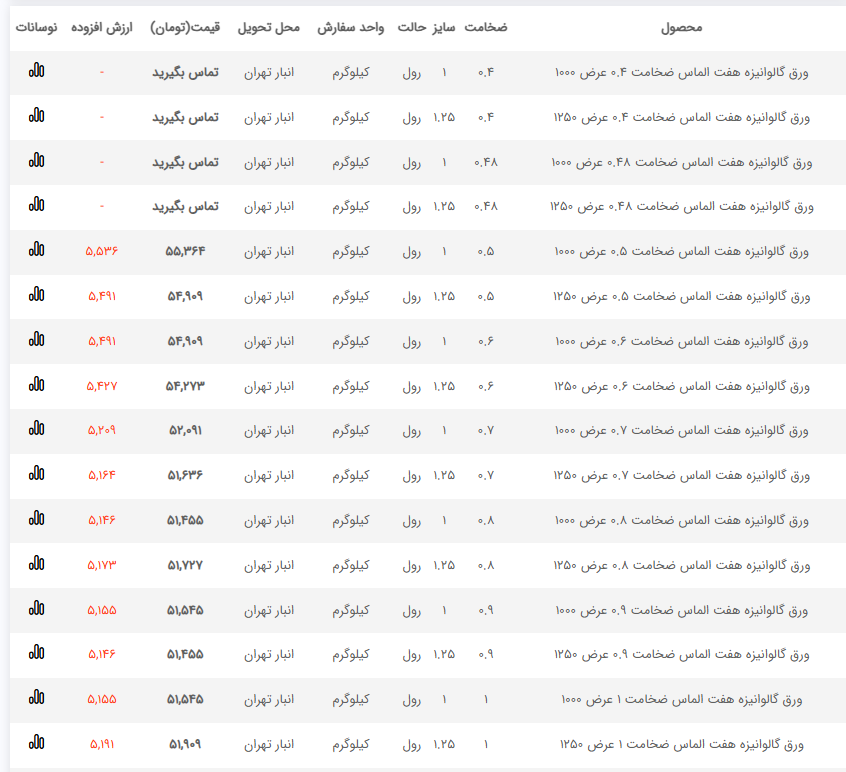 جهت مشاهده قیمت محصولات کلیک کنید.ورق گالوانیزه رنگی سفید یخچالی 0.7 عرض 1.25 فولاد مبارکه