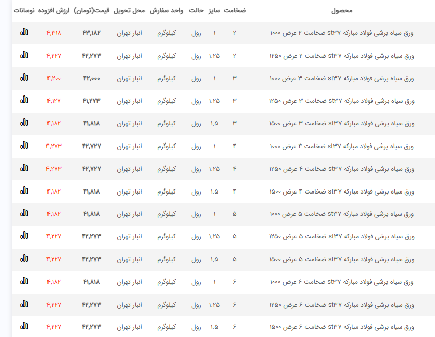 جهت مشاهده صورت بارها کلیک کنید.خریدار ورق 2/5 عرض 125 سیاه ST37 مبارکه خوش قیمت هستیم