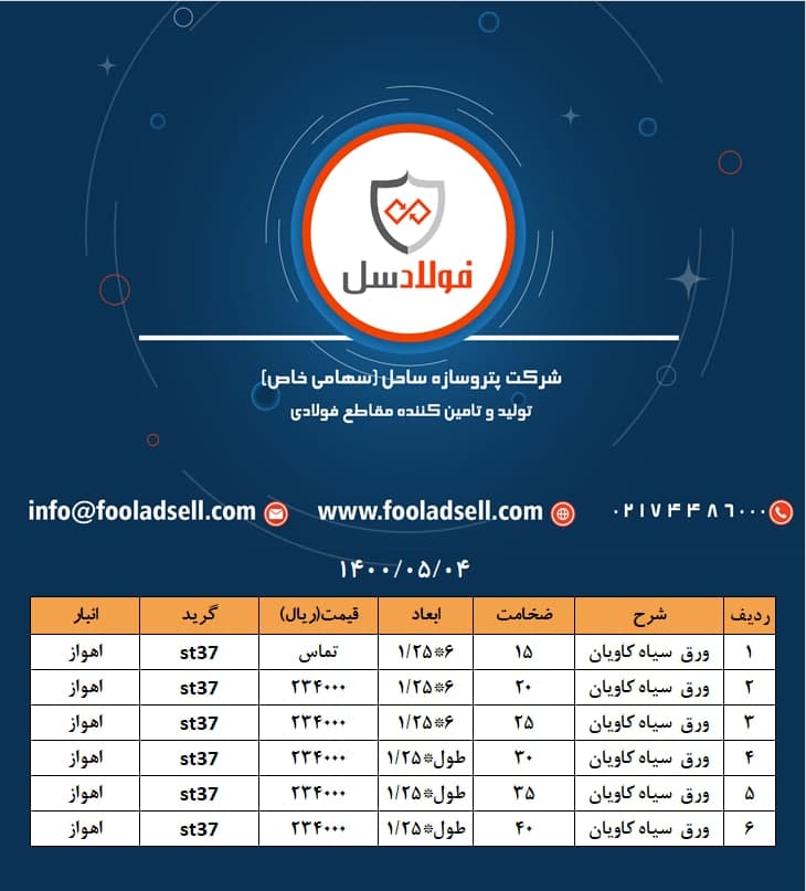 #ورق_سیاه _کاویان #st37 #ورق #فولادسل 🔸خرید با ال سی بانکی بلند مدت برای تولید کنندگان امکانپذیر است🔸🔸 کارشناس فروش:خانم الهه دوستی داخلی104 تلفن تماس 02174486 ...