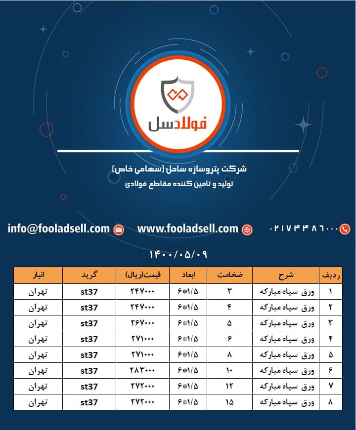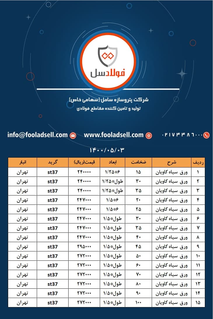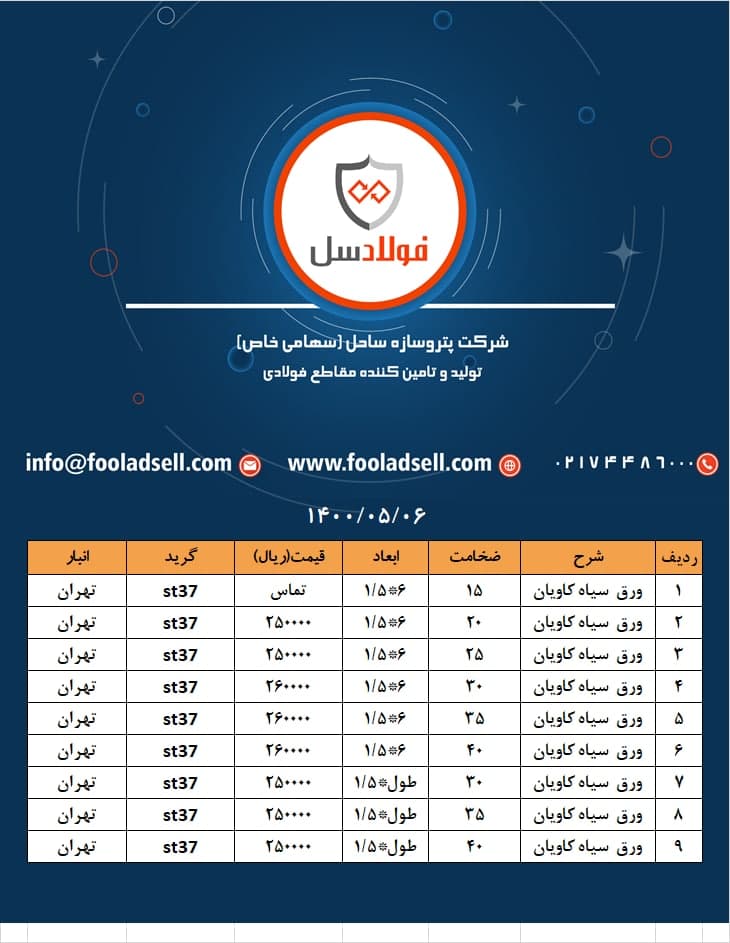 [ Photo ] #ورق_سیاه _کاویان #st37 #ورق #فولادسل 🔸خرید با ال سی بانکی بلند مدت برای تولید کنندگان امکانپذیر است🔸🔸 کارشناس فروش:خانم الهه دوستی داخلی104 تلفن تما ...
