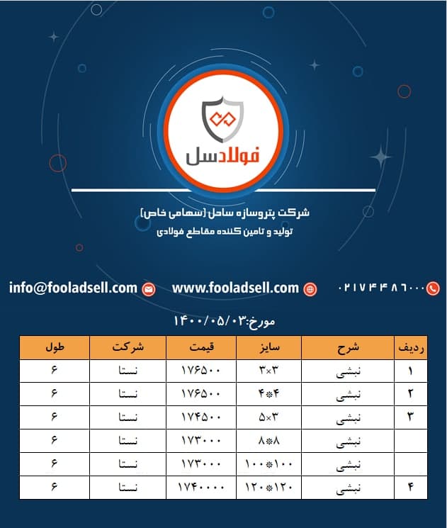 نبشی کارشناس فروش: نیرومند شرکت: 02174486000 داخلی 117 @fooladsell 🔸🔸خرید با ال سی بانکی بلند مدت برای تولید کنندگان امکانپذیر است🔸🔸