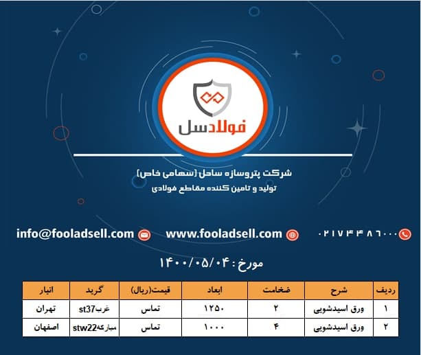 #ورق_اسیدشویی #فولادسل #ورق کارشناس فروش:سودابه قرگز تلفن تماس 02172386000 داخلی : 103 🔸🔸خرید با ال سی بانکی بلند مدت برای تولید کنندگان امکانپذیر است🔸🔸