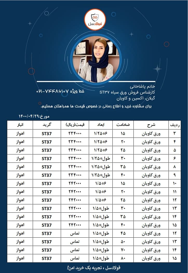#فولادسل #ورق_سیاه کارشناس فروش: نیرومند شرکت: 02174486000 داخلی 117 @fooladsell 🔸🔸خرید با ال سی بانکی بلند مدت برای تولید کنندگان امکانپذیر است🔸🔸