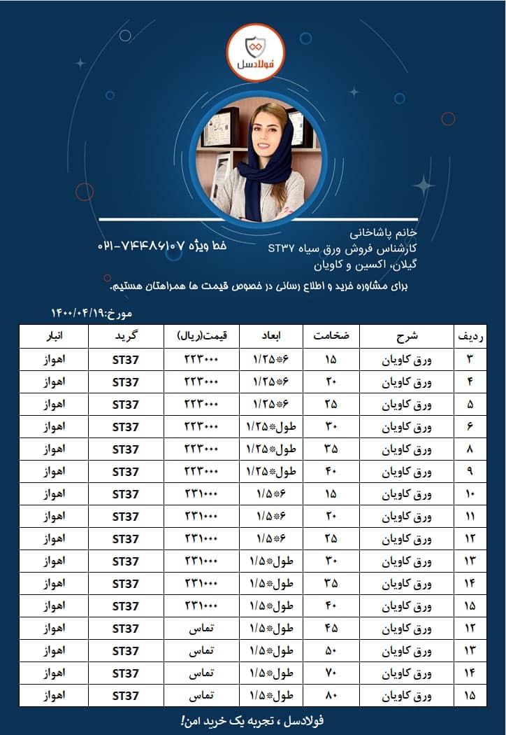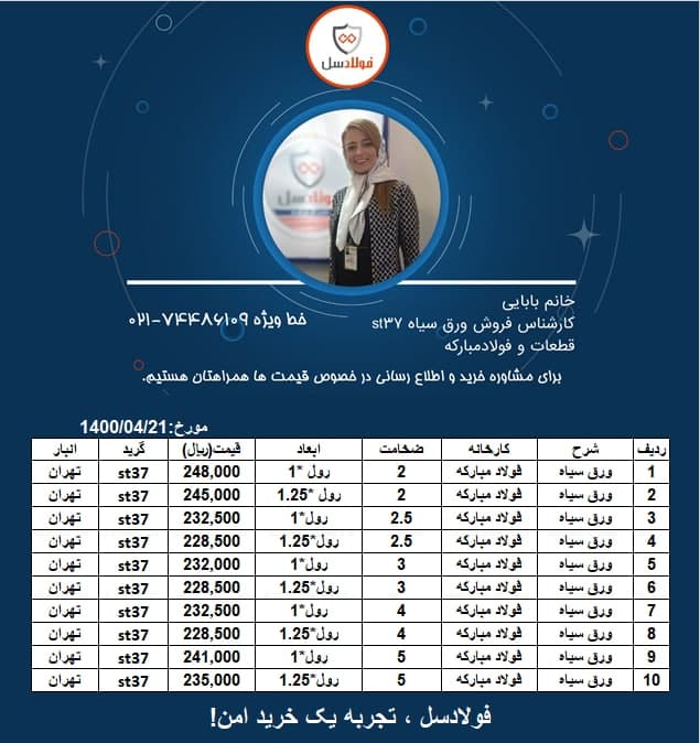 [ Photo ] #فولادسل #ورق_سیاه کارشناس فروش: خانم بابایی شرکت: 02174486000 داخلی 109 @fooladsell 🔸🔸خرید با ال سی بانکی بلند مدت برای تولید کنندگان امکانپذیر است🔸🔸