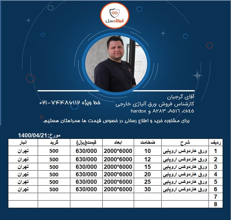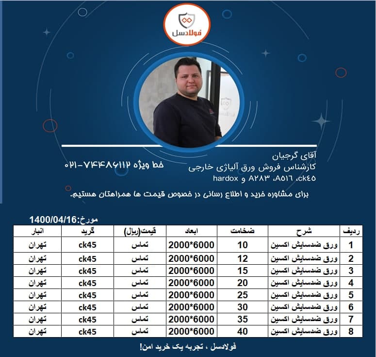 #فولادسل #ورق_آلیاژی کارشناس فروش: محسن گرجیان شرکت: 02172386000 داخلی 112 🔸🔸خرید با ال سی بانکی بلند مدت برای تولید کنندگان امکانپذیر است🔸