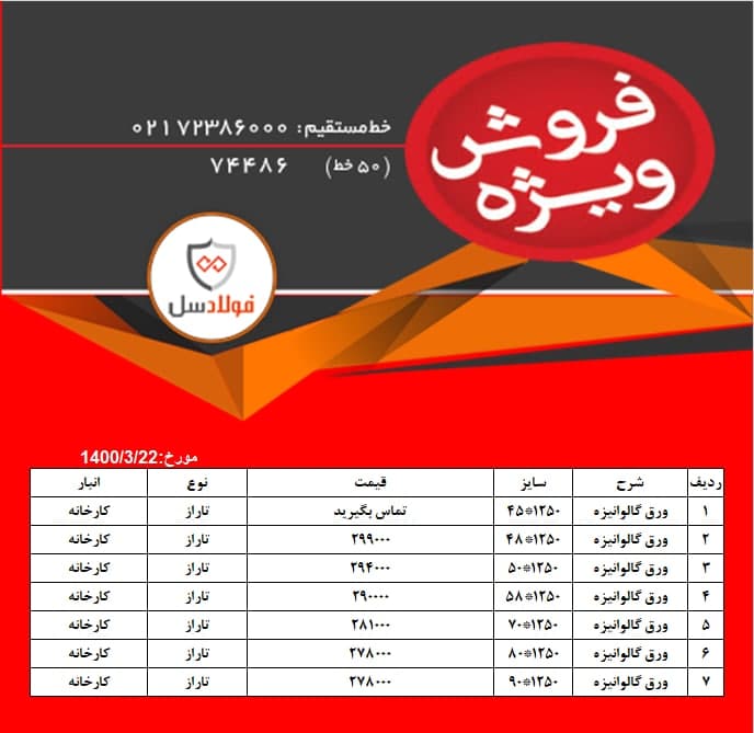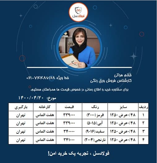 #ورق_رنگی #فولادسل کارشناس فروش:هراتی شماره تماس:02174486000 داخلی:128 🔸