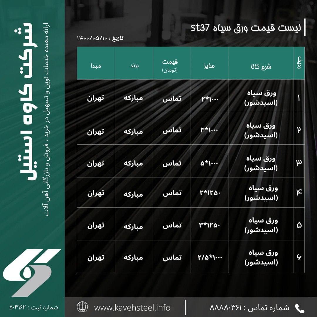 📌لیست قیمت #ورق_سیاه (اسید شور) -مبارکه (تهران) 🗓تاریخ : ۱۴۰۰/۰۵/۱۲ شماره های تماس : 📞 02188880361 📞02188782852