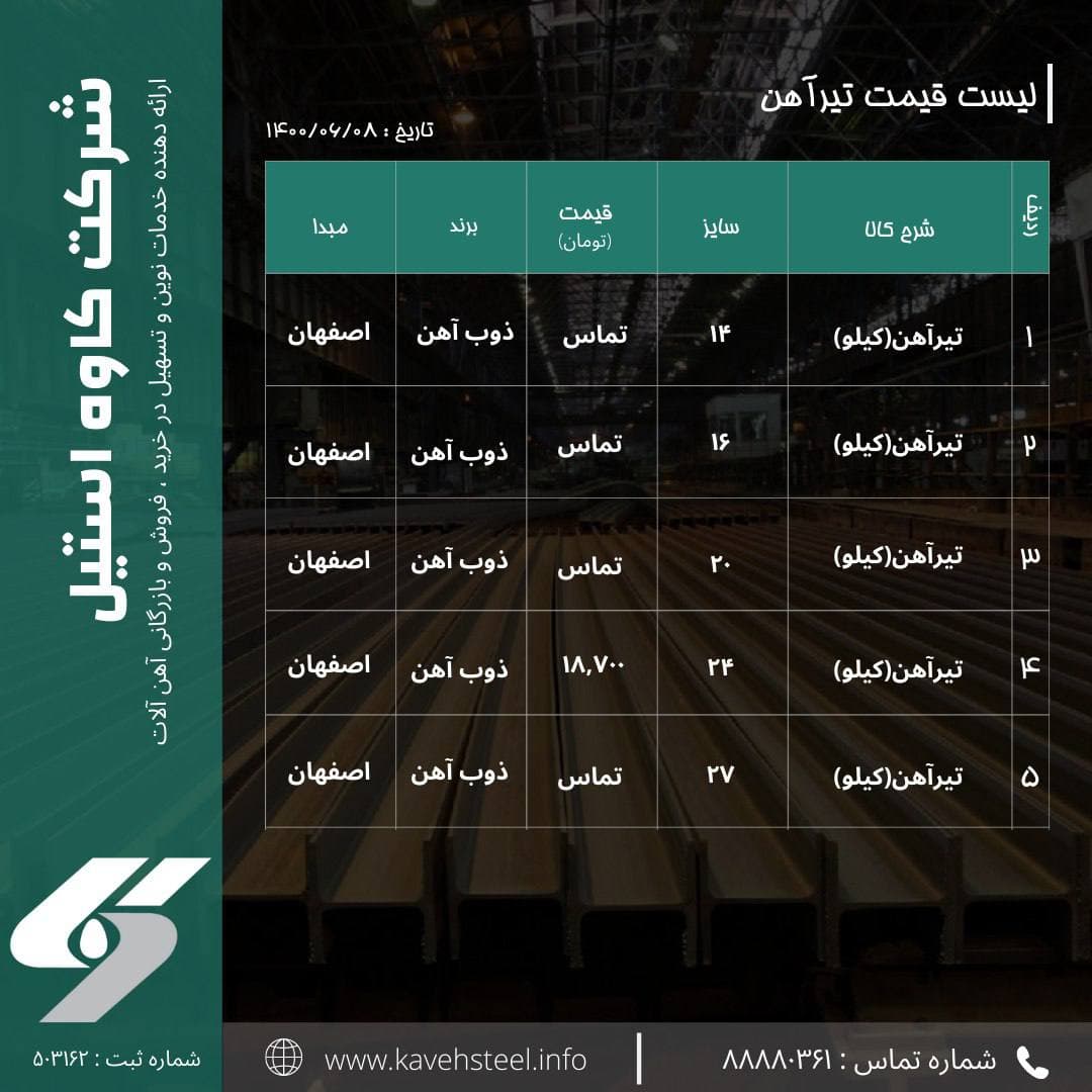 📌لیست قیمت #تیرآهن (ذوب آهن) - اصفهان 🗓تاریخ : ۱۴۰۰/۰۶/۰۸ شماره های تماس : 📞 02188880361 📞02188780310