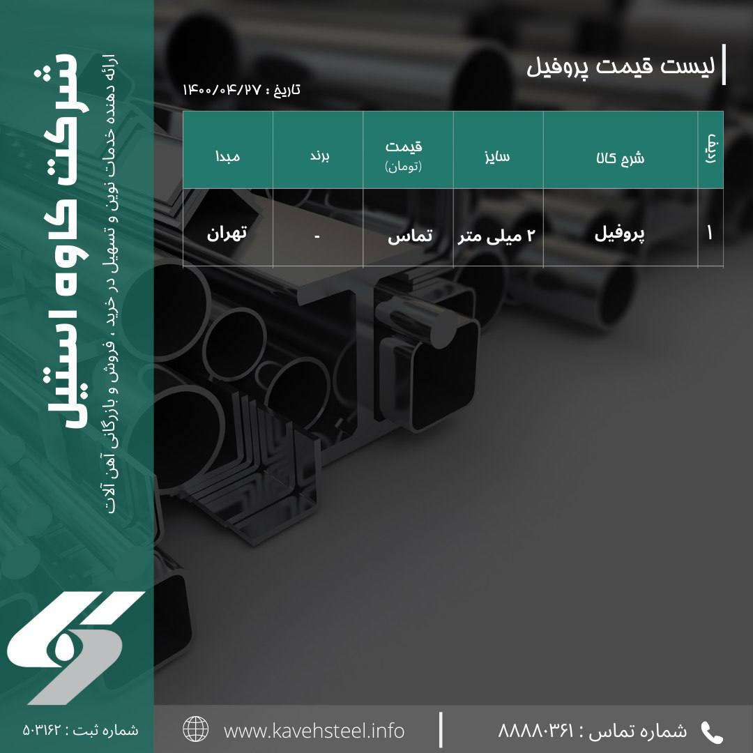 📌لیست قیمت #پروفیل (تهران) 🗓تاریخ : ۱۴۰۰/۰۴/۲۶ شماره های تماس : 📞 02188880361 📞02188782852