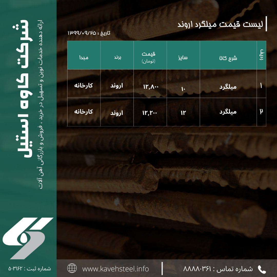 [ Photo ] 📌لیست قیمت #میلگرد(اروند) - کارخانه 🗓تاریخ : ۱۳۹۹/۰۹/۲۵ شماره های تماس : 📞 02188880361 📞02188780310 @steel_kaveh