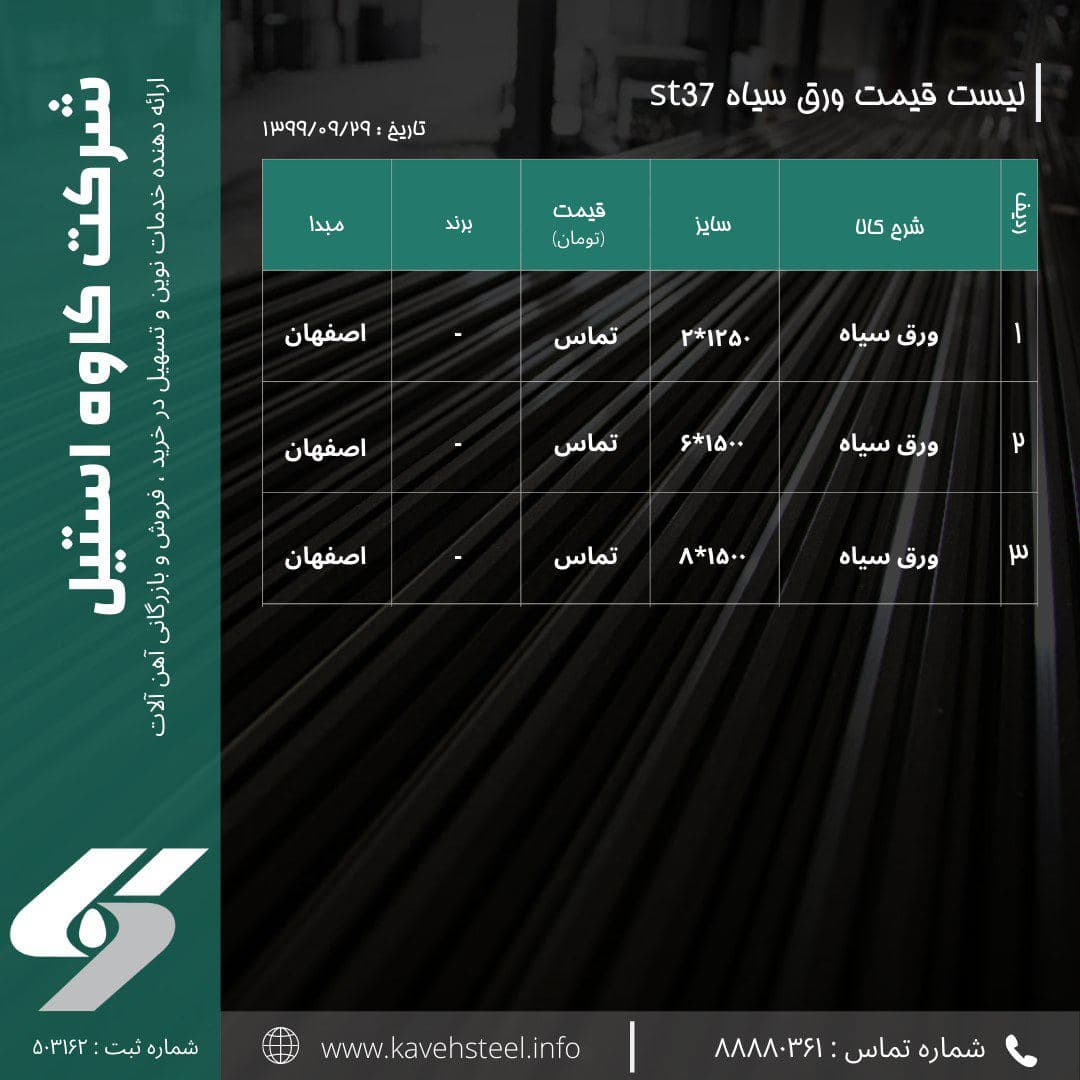 📌لیست قیمت #ورق_سیاه (اصفهان) 🗓تاریخ : ۱۳۹۹/۰۹/۲۹ شماره های تماس : 📞 02188880361 📞02188780310 @steel_kaveh